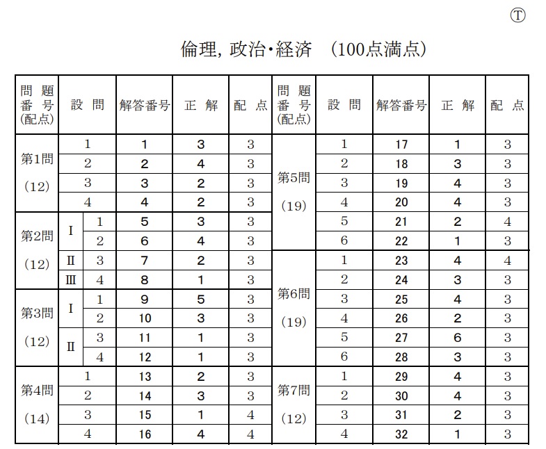 共通テスト【倫理・政治経済】2023年 本試 解答