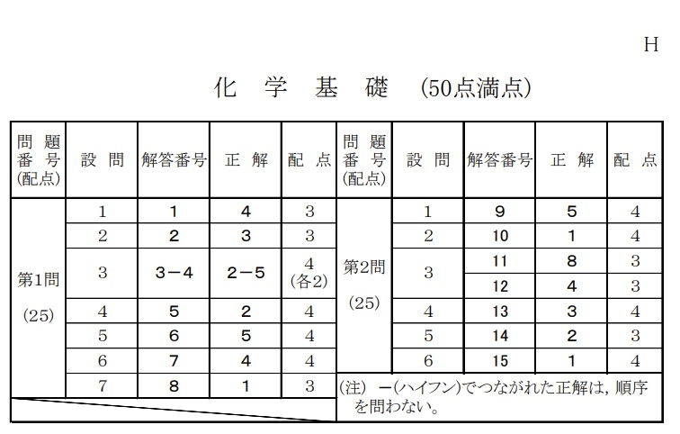 共通テスト【化学基礎】2020年 本試 解答