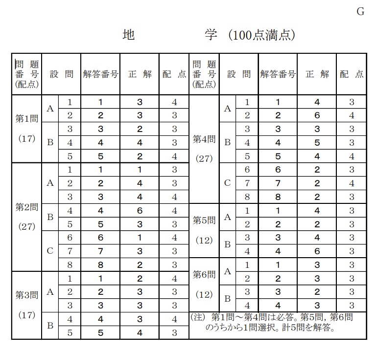共通テスト【地学】2020年 追試 解答