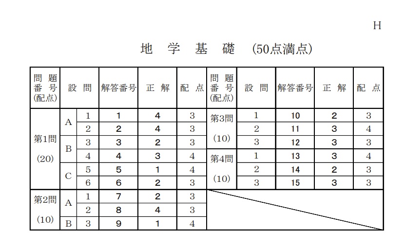 共通テスト【地学基礎】2020年 本試 解答