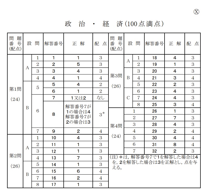 共通テスト【政治経済】2021年 追試 解答