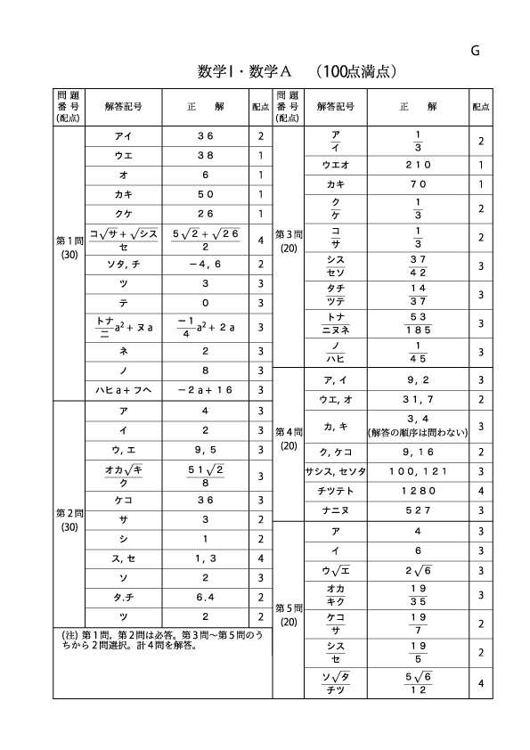 共通テスト【数学ⅠA】2020年 追試 問題+解答