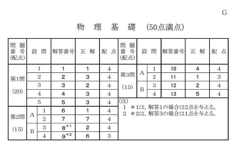 共通テスト【物理基礎】2020年 追試 解答